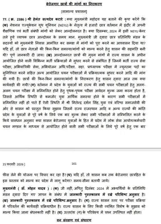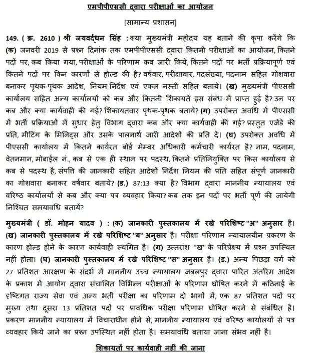 दिसंबर 2024 के प्रदर्शन के बाद तो सीएम डॉ. मोहन यादव ने आंदोलनकारियों के प्रतिनिधिमंडल से मुलाकात भी की थी। अब इन सभी को लेकर क्या हुआ है और 87-13 फीसदी फार्मूले को लेकर विधानसभा में भी सवाल उठे थे। इनके जवाब सीएम डॉ. मोहन यादव ने ही दिए हैं।