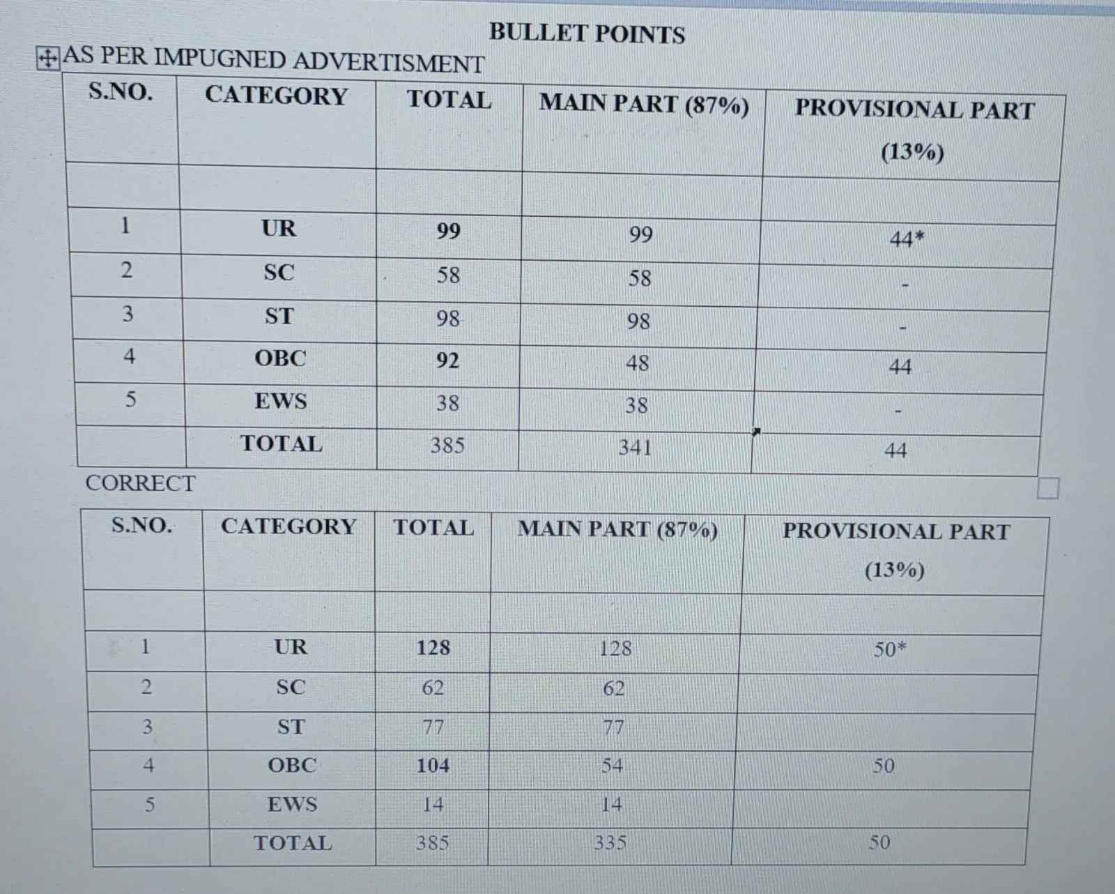 याचिकाकर्ताओं ने बताया कि आयोग द्वारा 385 पदों का विज्ञापन था। इसमें अनारक्षित के लिए 99, एससी के लिए 58, एसटी के लिए 98, ओबीसी के लिए 92 और ईडब्ल्यूएस के लिए 38 पद रखे गए थे। लेकिन आरक्षण का गणित गलत था, क्योंकि कुल ईडब्ल्यूएस के लिए दस फीसदी पद अनारक्षित से रखे जाने थे ना कि कुल पदों में से।