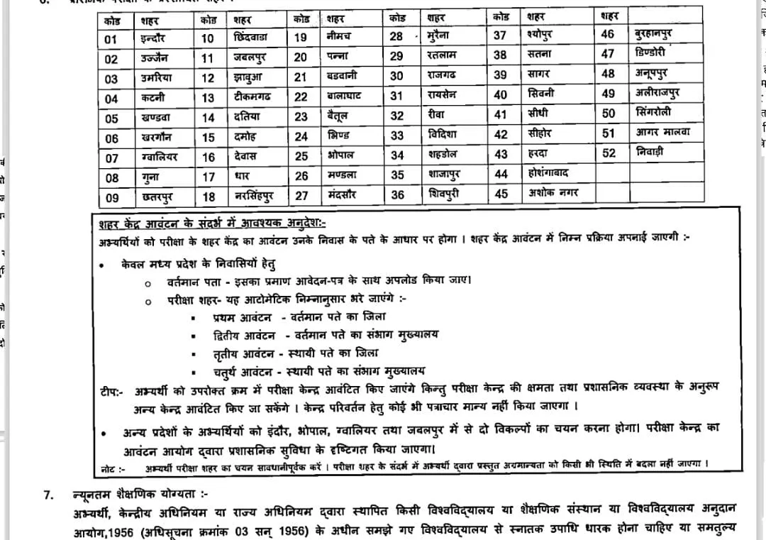 इसके पहले परीक्षा नियम था कि मप्र के मूल निवासियों को अपने वर्तमान पता का प्रमाणपत्र आवेदन के साथ लगाना होगा, जैसे कि बिजली बिल, किरायानामा, शपथपत्र आदि, इसके आधार पर उन्हें वह परीक्षा केंद्र मिल जाता था। जिला नहीं मिलने पर संभाग मुख्यालय दे दिया जाता था। यह भी उपलब्ध नहीं होने पर उम्मीदवार को फिर तीसरे नंबर पर स्थाई पते वाले गृह जिले में भेजा जाता था। लेकिन अब वर्तमान पते की च्वाइस खत्म कर दी गई है। उम्मीदवार को परीक्षा देने अब अपने गृह जिला यानी स्थाई पते वाले जिले में ही परीक्षा देने जाना होगा।