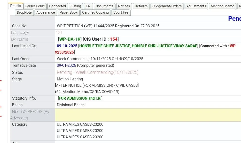 | 21 जुलाई 2025 | प्रारंभिक सुनवाई और शेड्यूल पेश करने के निर्देश |