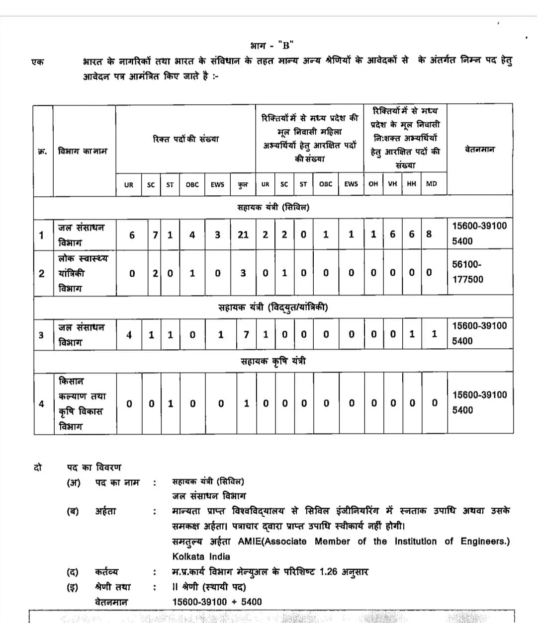 लोक स्वास्थ्य यांत्रिकी में असिस्टेंट इंजीनियर सिविल के 3 पद हैं। इनमें दो पद एससी और एक पद ओबीसी के लिए हैं। इसमें दिव्यांग के लिए पद नहीं हैं। साथ ही, एससी के दो पदों में से एक महिला के लिए आरक्षित है।