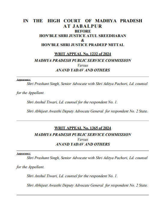 बड़ी बात यह है कि हाईकोर्ट ने केस अलाउड किया है यानी कि रिट अपील मान्य हो गई। फैसला मप्र लोक सेवा आयोग के पक्ष में गया है। इसके चलते रिजल्ट जारी करने में अब कोई रोक नहीं है। हालांकि अभी हाईकोर्ट की साइट पर यही दिखाया है कि केस अलाउड, 1 सितंबर, केस डिस्पोज। अभी औपचारिक आदेश आना बाकी है। यह आदेश बुधवार रात को ही या फिर गुरुवार शाम तक अपलोड होने की पूरी संभावना है।