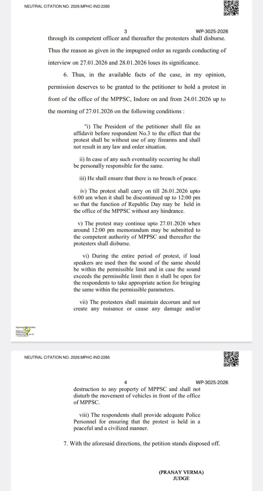 - हाईकोर्ट ने शांतिपूर्वक MPPSC महाआंदोलन की अनुमति दी और शर्तें तय कीं।
