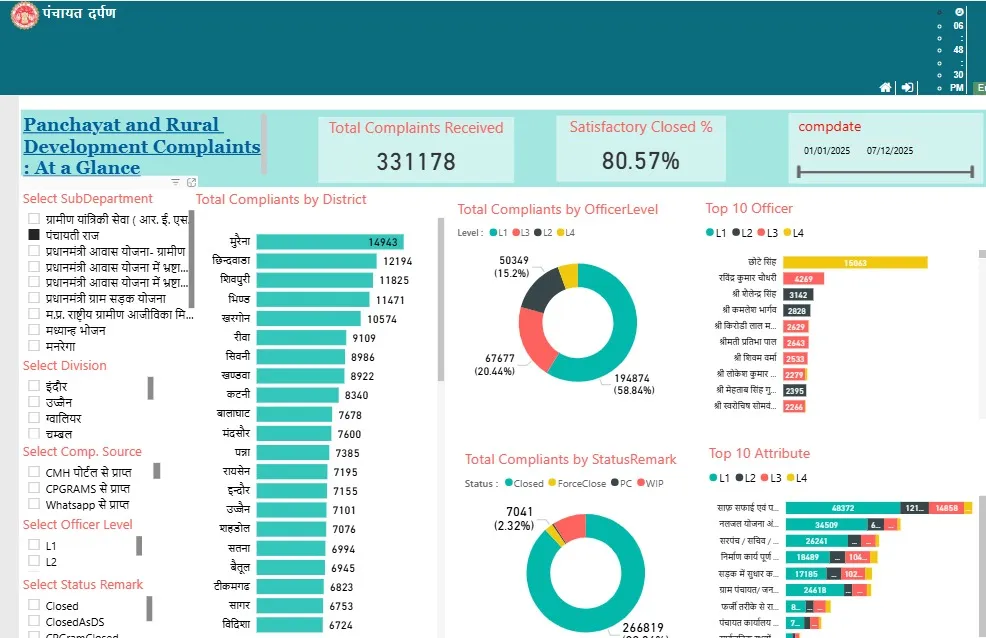 यह स्थिति तब है जब निर्माण कार्यों में गुणवत्ता की कमी, अनियमितता और भ्रष्टाचार की शिकायतें बढ़ी हुई हैं। पंचायती राज से संबंधित 3.31 लाख शिकायतें पोर्टल पर दर्ज है। सबसे ज्यादा 14943 शिकायतें मुरैना जिले से दर्ज की गई हैं। सबसे कम 339 आलीराजपुर से आई हैं।