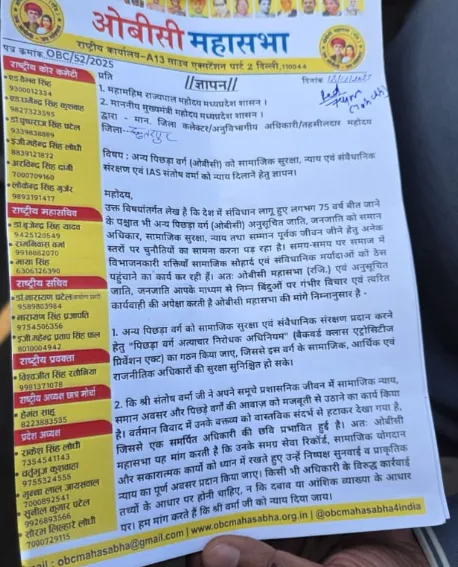 यह पूरा घटनाक्रम कलेक्ट्रेट कार्यालय में घटा। ओबीसी महासभा के जिला अध्यक्ष तीरथ कुशवाहा के नेतृत्व में कार्यकर्ता वहां पहुंचे थे। तहसीलदार पीयूष दीक्षित ने उनका ज्ञापन लिया। तीरथ कुशवाहा ने कहा कि हम आईएएस संतोष वर्मा के साथ हैं। उनका कहना है कि वर्मा के विवादित बयान के बावजूद उन पर कार्रवाई नहीं होनी चाहिए। महासभा का तर्क है कि अगर कार्रवाई हो तो सब पर बराबर हो।