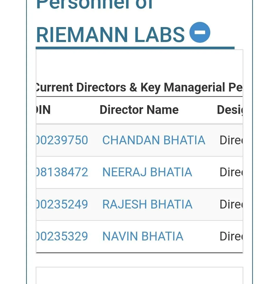रीमैन लैब्स कंपनी में चंदन भाटिया, नीरज भाटिया, राजेश भाटिया और नवीन भाटिया डायरेक्टर पद पर हैं।