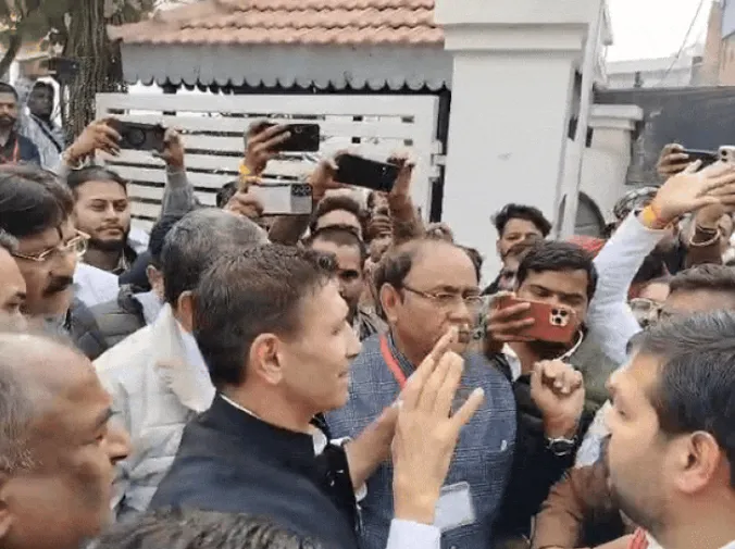 Rewa News. UGC कानून के खिलाफ देशभर में व्यापक विरोध चल रहा है। रीवा में भी इस विरोध का असर देखने को मिला है। आज रीवा में प्रदेश कांग्रेस अध्यक्ष जीतू पटवारी के दौरे के दौरान सियासी पारा चढ़ गया। बजट 2026 पर चर्चा करने आए पटवारी को सवर्ण समाज के छात्रों ने घेर लिया। छात्र यूजीसी (UGC) के नए नियमों पर कांग्रेस का रुख जानना चाहते थे। इस दौरान काफी देर तक माहौल तनावपूर्ण बना रहा।