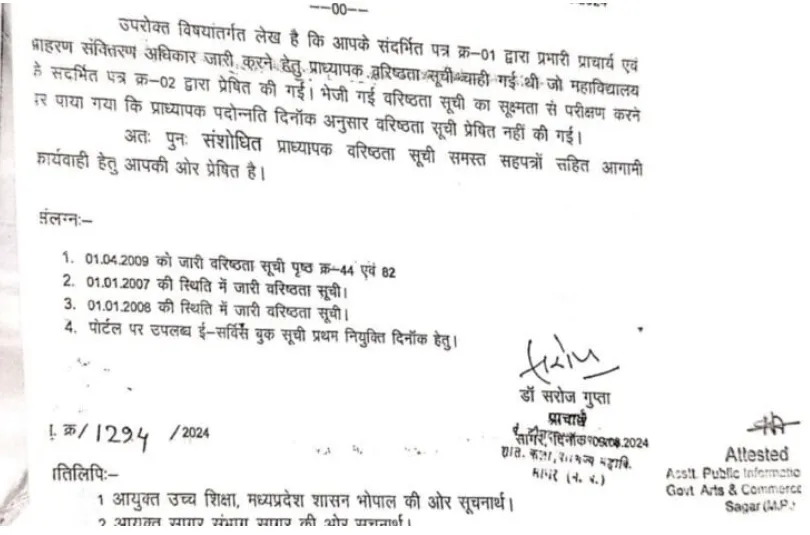 इस मामले की सुनवाई मुख्य पीठ, जबलपुर में चीफ जस्टिस संजीव सचदेवा और जस्टिस विनय सराफ की डिवीजन बेंच में हुई। कोर्ट ने मामले की गंभीरता को देखते हुए राज्य सरकार, उच्च शिक्षा विभाग, उच्च शिक्षा आयुक्त, को नोटिस दिया। साथ ही अतिरिक्त संचालक, संबंधित कॉलेजों के प्राचार्य और डॉ. सरोज गुप्ता को भी नोटिस जारी किया। सभी को चार सप्ताह के भीतर जवाब दाखिल करने के निर्देश दिए गए हैं।