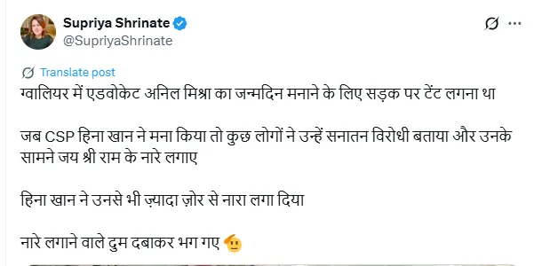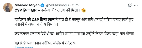 जय श्री राम का नारा लगाकर सुर्खियों में आईं CSP हिना खान