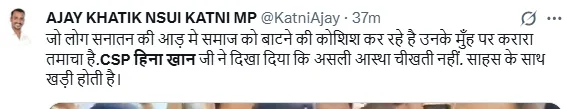 इस तनावपूर्ण माहौल में, अनिल मिश्रा ने रामायण पाठ करवाने की कोशिश की, लेकिन पुलिस ने इसे रोक दिया। मिश्रा ने हिना खान पर सनातन विरोधी होने का आरोप लगाया।