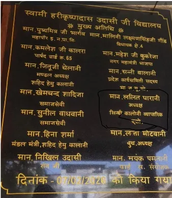 नई शिलालेख में मुख्य अतिथि महापौर पुष्यमित्र भार्गव और विधायक मालिनी गौड़ का नाम है। वहीं क्षेत्रीय पार्षद कमलेश कालरा, नगर मंत्री महेश कुकरेजा, मंडल अध्यक्ष जितू चेलानी भी नामित हैं। सिंधी कॉलोनी व्यापारिक एसोसिएशन अध्यक्ष ललित पारानी समेत दर्जन भर नेताओं के नाम शामिल हैं।