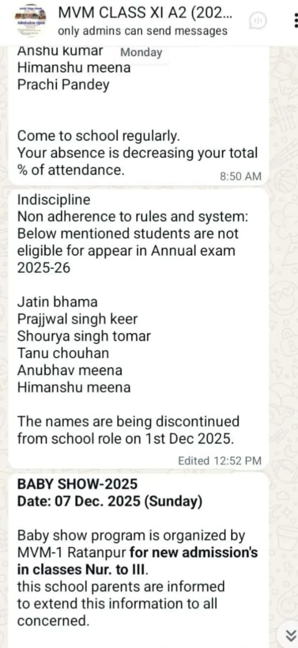 बच्चों की गैरहाजिरी पर विद्यालय प्रबंधन ने कठोर रुख अपनाते हुए इसे अनुशासनहीनता माना। सजा के तौर पर बच्चों को एक माह के लिए निष्कासित कर दिया गया। प्रबंधन ने निष्कासन की सूचना विद्यालय के व्हाट्सऐप ग्रुप में साझा की। इससे मामला पूरे स्कूल समुदाय में फैल गया और सोशल मीडिया पर वायरल हो गया।