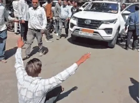 विधायक की गाड़ी के सामने बैठकर विरोध प्रदर्शन