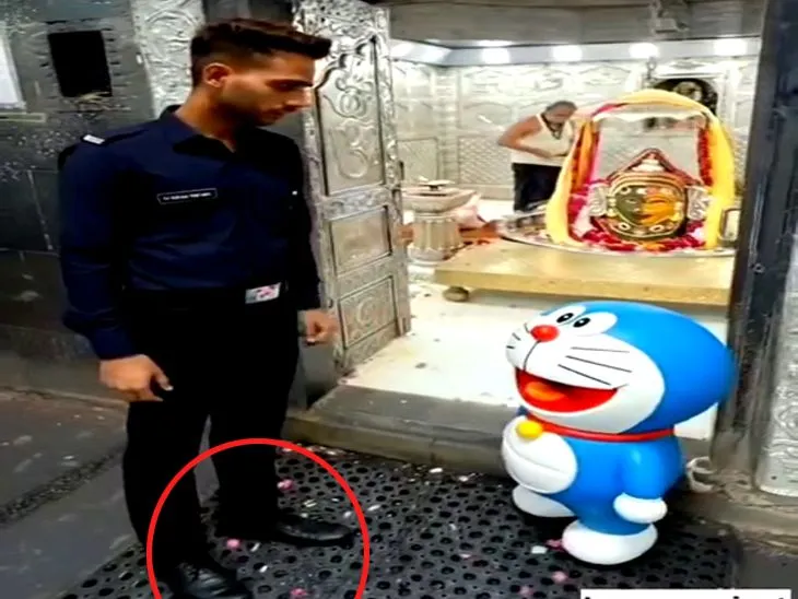 गार्ड कहता है कि अंदर जाने के लिए वीआईपी पास चाहिए, गैजेट नहीं। इसके साथ ही, वीडियो में एक युवक 250 रुपए में पास बेचते हुए दिखाई देता है। डोरेमॉन पास खरीदकर गर्भगृह में दर्शन करने जाता है। वहीं, वीडियो में गार्ड को जूते पहने देख मंदिर के पुजारियों और श्रद्धालुओं ने आपत्ति जताई है।