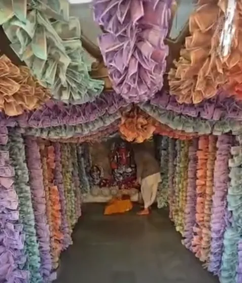 मंदिर समिति ने भगवान गणपति का श्रृंगार करने में कोई कसर बाकी नहीं छोड़ी है। बप्पा को 15 लाख रुपए की सोने की चेन और स्वर्ण तिलक अर्पित किया गया। कुल मिलाकर 36 लाख रुपए की सामग्री से मंदिर का कोना-कोना चमक उठा है। सजावट में 500, 100 और 50 रुपए के नए नोटों का उपयोग किया गया है। भक्तों के लिए भगवान का यह दिव्य स्वरूप किसी चमत्कार से कम नहीं लग रहा।