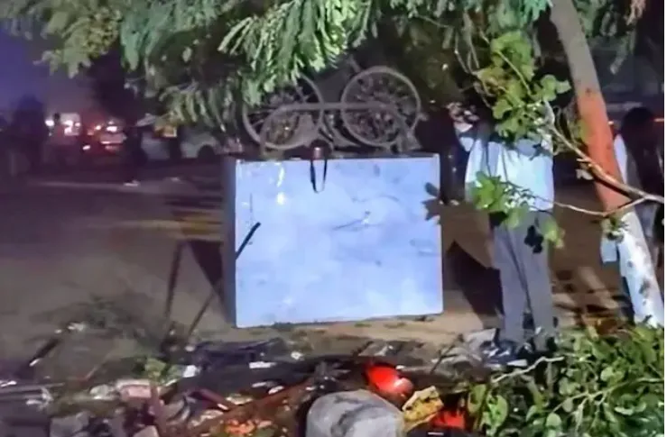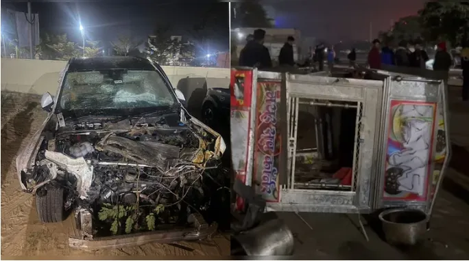नशे में धुत कार सवारों ने डिवाइडर और 10 फूड स्टॉल्स को मारी टक्कर।