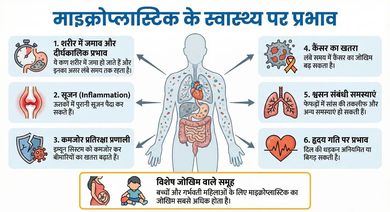 माइक्रोप्लास्टिक का खतरा: माइक्रोप्लास्टिक ये कण शरीर में जमा हो जाते हैं। इनका लंबे समय तक असर दिखता है।