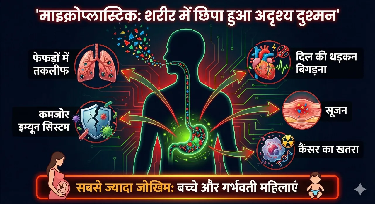 सोचिए, ये छोटे प्लास्टिक भोजन से पेट में जाते हैं। पानी और हवा से फेफड़ों तक पहुंचते हैं। हाल के शोध बताते हैं। फेफड़े, दिल और यहां तक कि मां के दूध में भी ये कण मिले हैं। अजन्मे बच्चों के शरीर में भी पाए गए हैं।